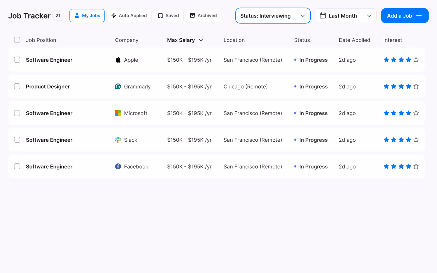 "After my layoff from Silicon Valley Bank, Jobsolv transformed my job search. They revamped my resume, found 200+ targeted roles, and handled applications, turning 4 interviews into 18 within two months. I ultimately landed a new position with a 50% salary increase. Jobsolv gave me peace of mind and saved me countless hours—highly recommend!"